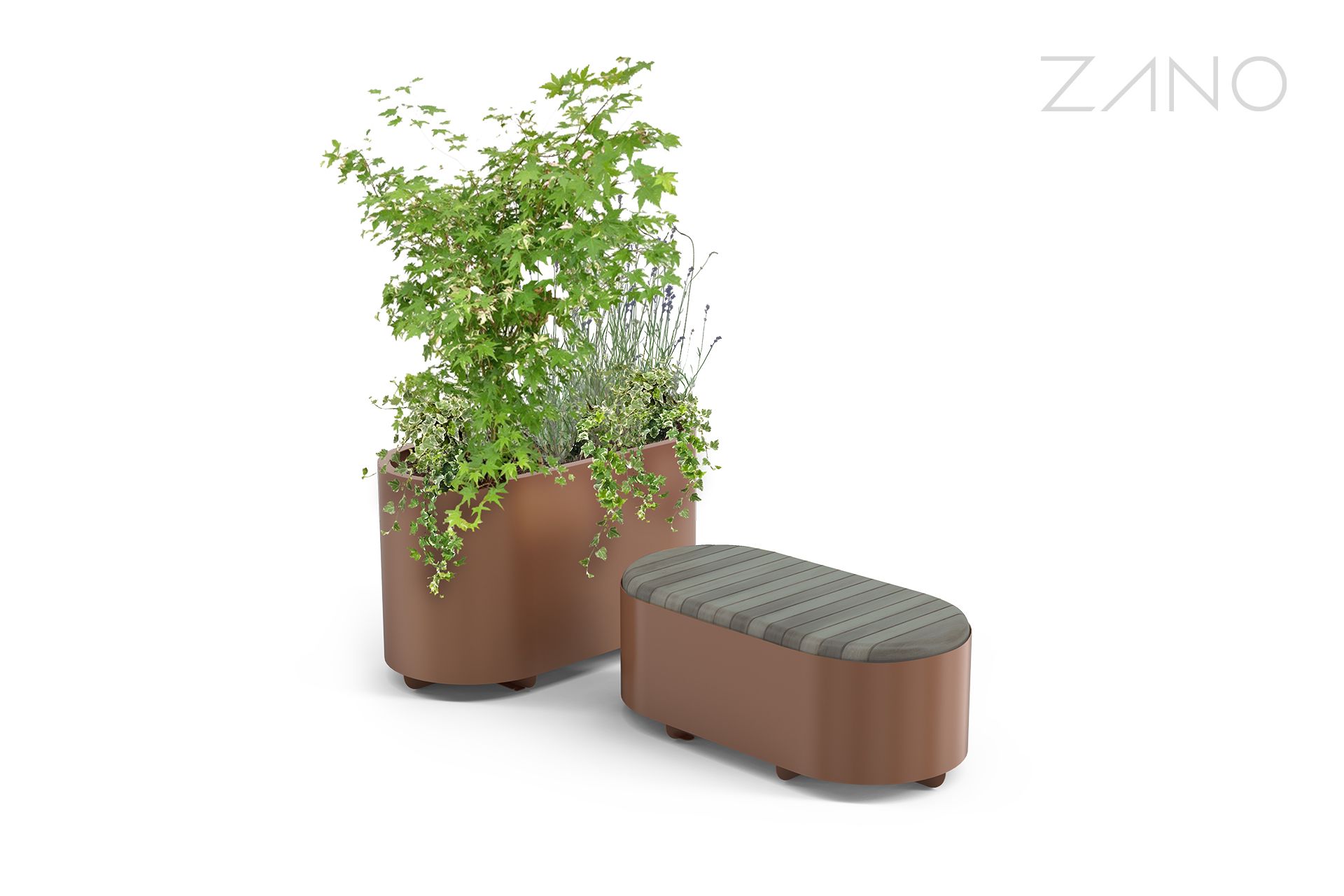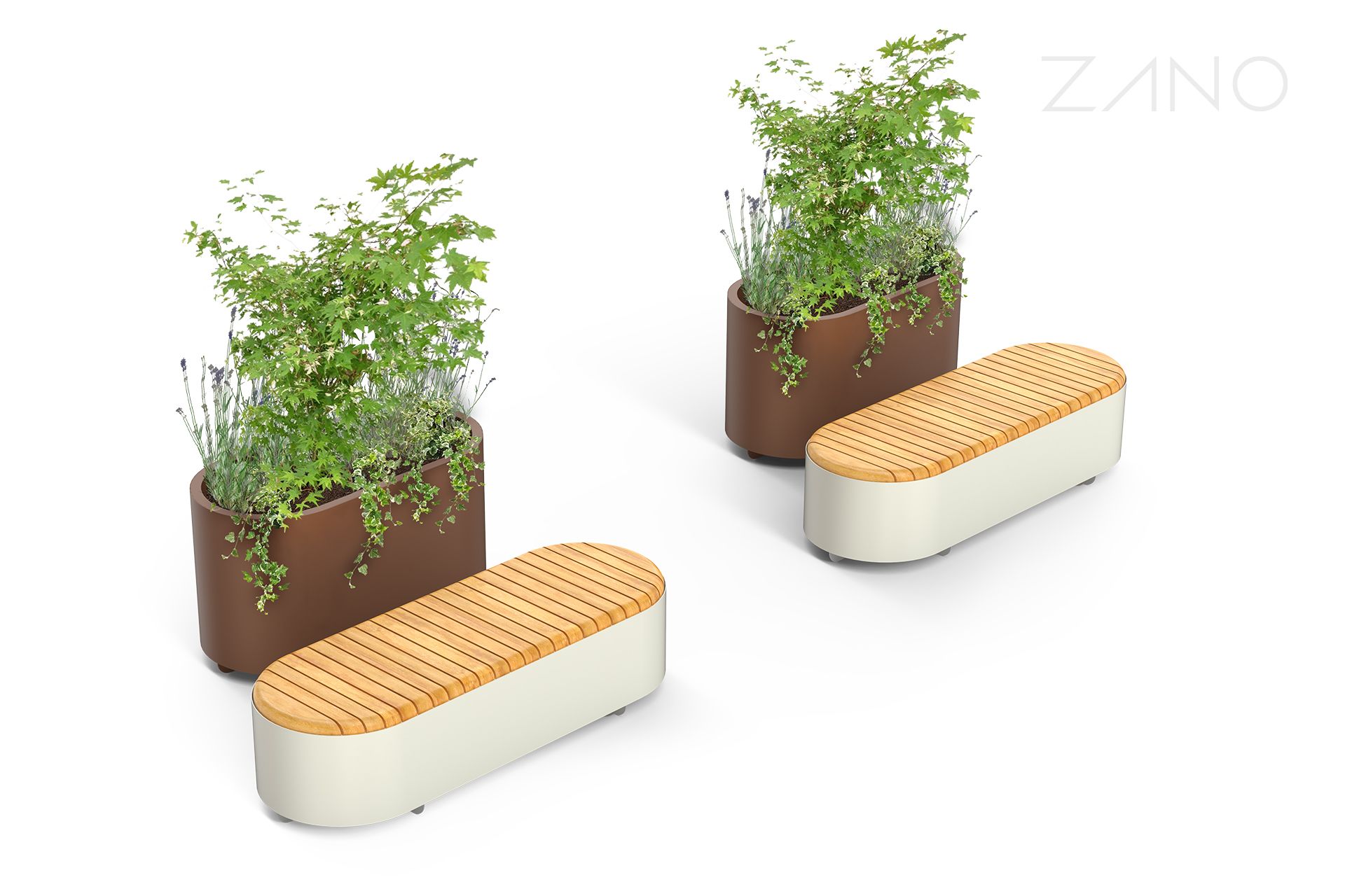Universe-serien med gatemøbler omfatter benker, blomsterpotter og en solstasjon, alle laget av stål. Deres ovale, minimalistiske form passer perfekt inn i moderne arkitektoniske og urbane omgivelser.