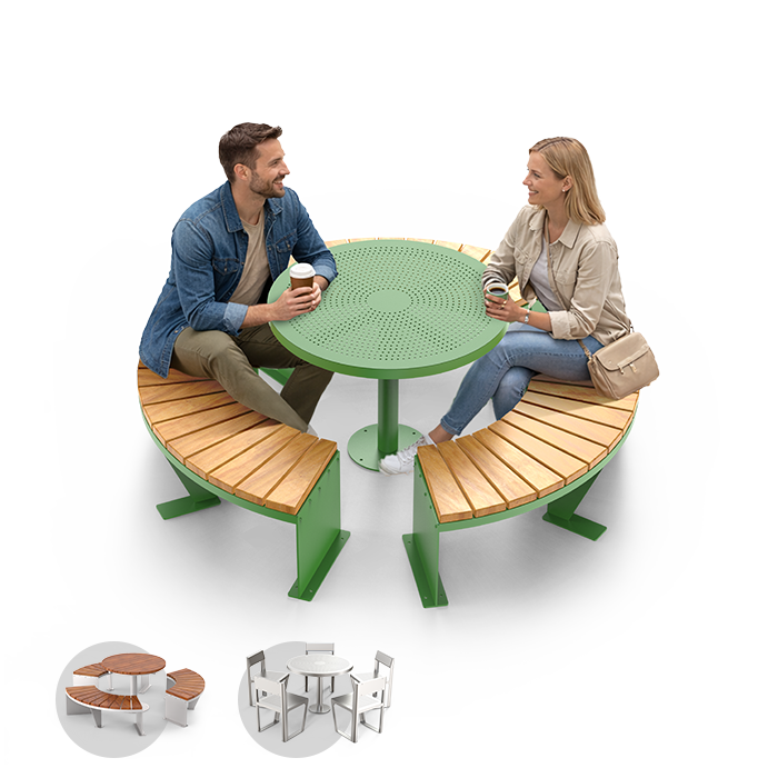Vi tilbyr bymøbler av den typen som urbane grøntområder ikke kan klare seg uten. Vårt sortiment utvides til å omfatte piknikbord, som takket være vår oppmerksomhet på detaljer og funksjonalitet kombinerer egenskapene til et praktisk verktøy og dekorasjon i ett. Ved å bruke tre, karbonstål og rustfritt stål av beste kvalitet har vi kunnet gi bordene våre egenskaper som skiller dem fra konkurrentene, samtidig som de passer perfekt inn i moderne byarkitektur.